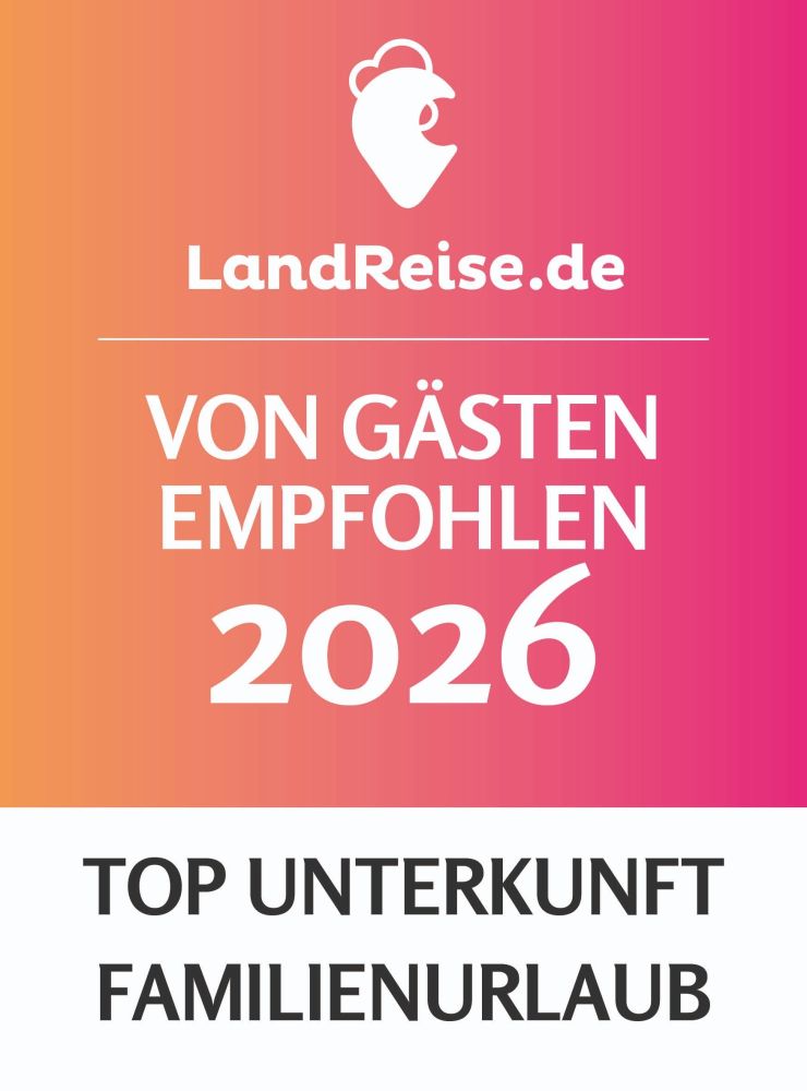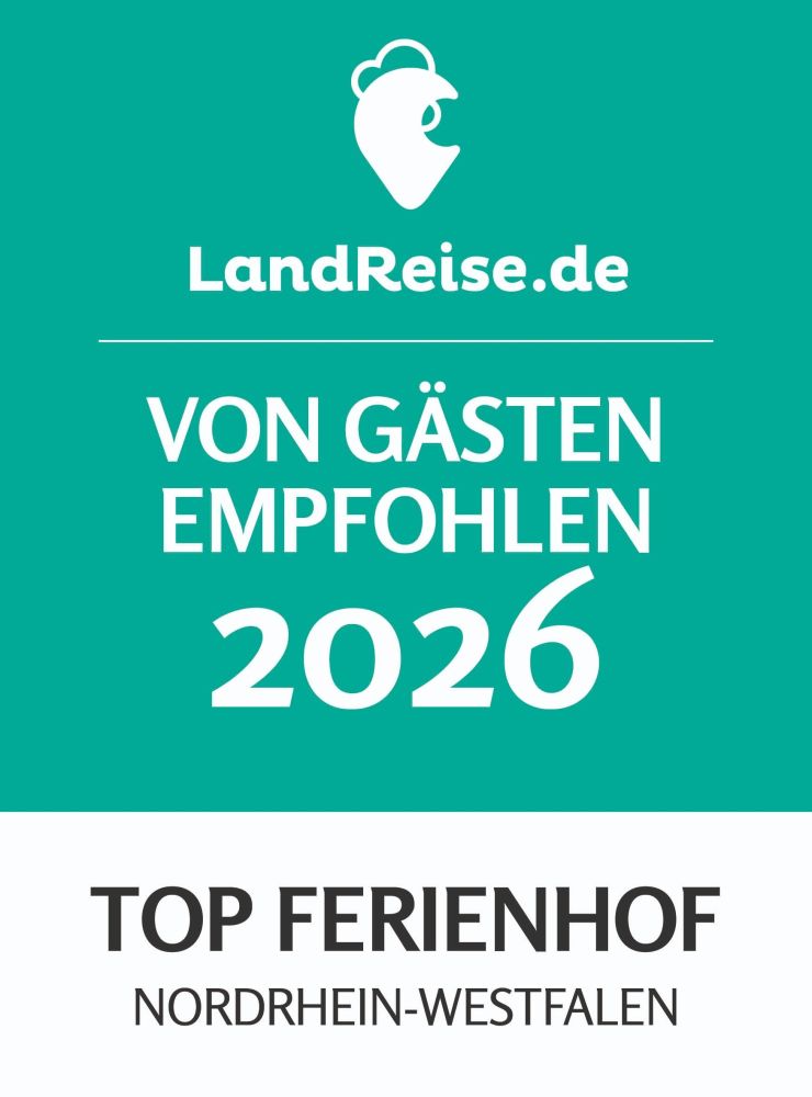 Außerdem hat es uns sehr gefreut das wir von Landreise die Auszeichnung Top Ferienhof NRW 2026 und Top Unterkunft Familienurlaub 2026 erhalten haben.