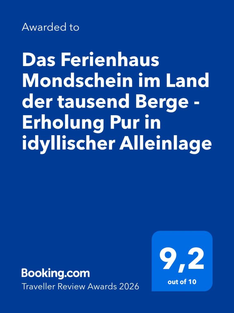 Desweiteren wurde unser Ferienhaus von booking.com mit dem Traveller Review Awards 2026 mit 9,2 von 10 Punkten ausfezeichnet.